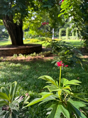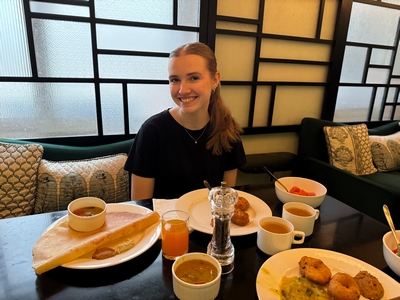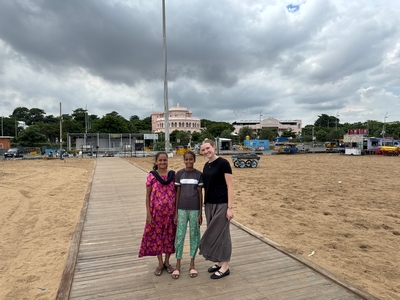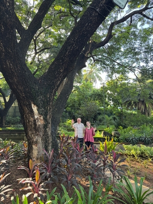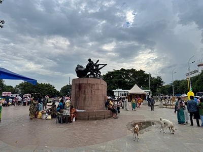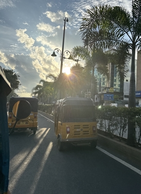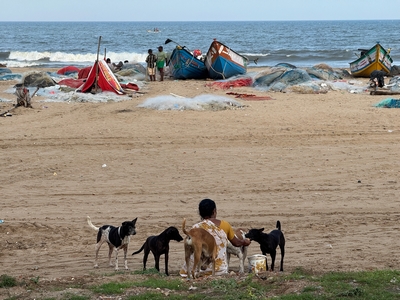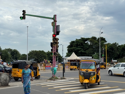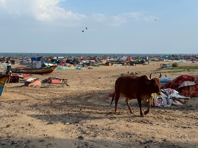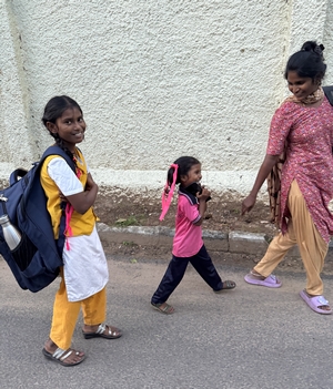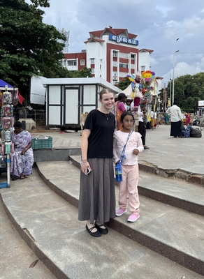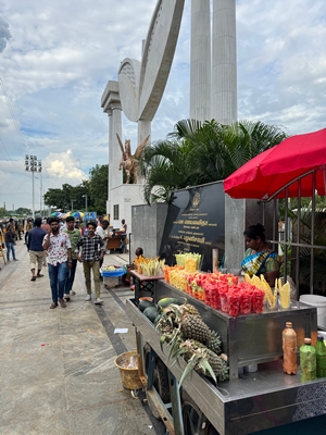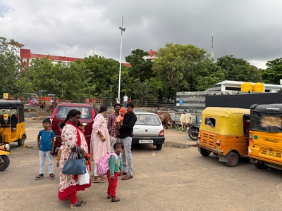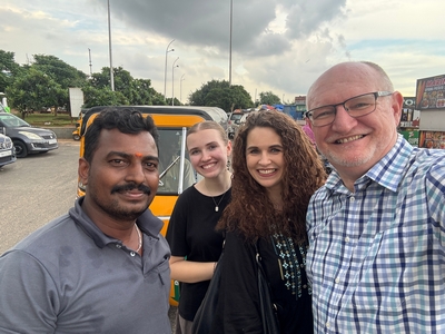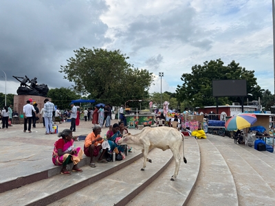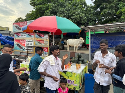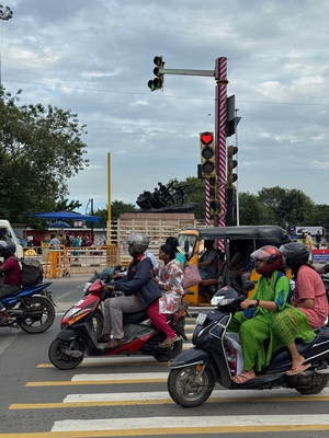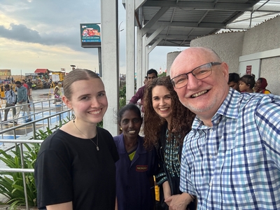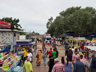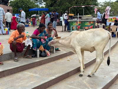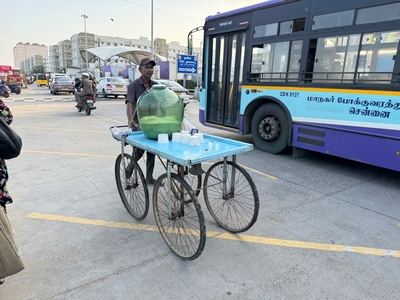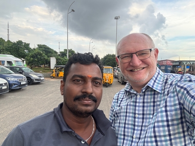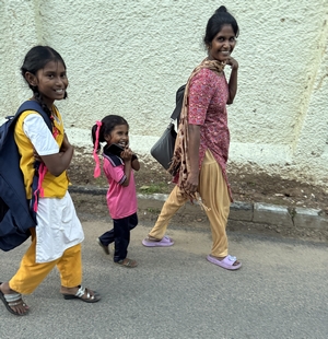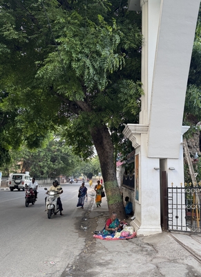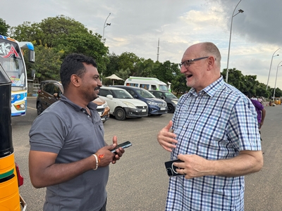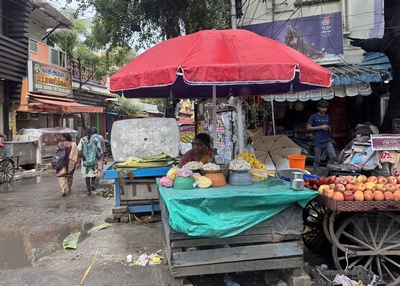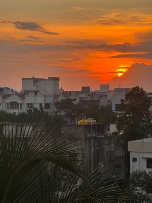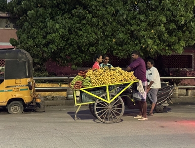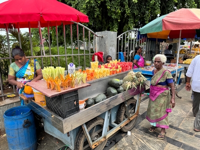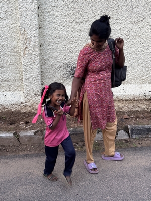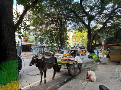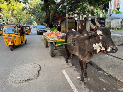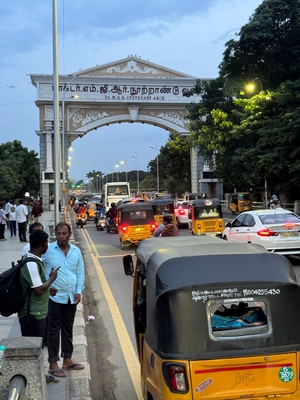 Co se týče prostředí, tak je to tady hodně podobné jako v Bombaji. Někdy jedeme taxikem a připadá mi, že jsme v Bombaji, až když uvidím tamilské písmo, tak mi dojde, že ne :-) Jsou zde stejné kastovní a majetkové rozdíly mezi lidmi - luxusní obchodní domy jako oázy pro bohaté uprostřed chudinského prostředí. Na ulici potkáváš žebráky, vidíš, jak lidé žijí na chodnících a pod mosty... Přijde mi však, že jich není tolik jako v Bombaji. Rozhodně to tady není tolik nahuštěné a nešetří se každým metrem. Nejsou zde mrakodrapy a je tady trochu více zeleně a lepší vzduch. Také jsme si všimli, že je zde na ulicích méně odpadků, zato ale více zvířat, jako jsou krávy, kozy, různé "rasy" pouličních psů... Teplotu jsme tady měli ale neustále přes třicet stupňů s vlhkým tropickým vzduchem. Několik dní jsme zažili deště, které ale vzduch nezchladily. Hned první den se tady "na uvítání" Sárince rozbily brýle, tak jsme další den pořídili nové. Překvapivě byly připravené hned následující den. Jinak je zde vše spíše pomalejší :-) Asi nejvíce rosteme v trpělivosti skrze řidiče taxiků a riksh :-)