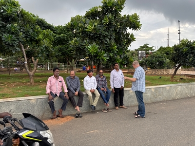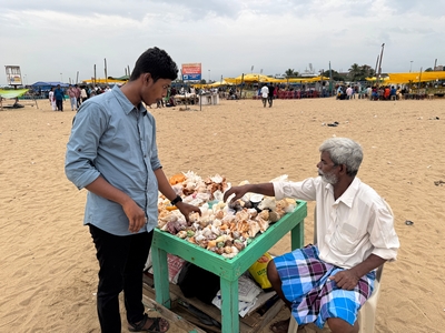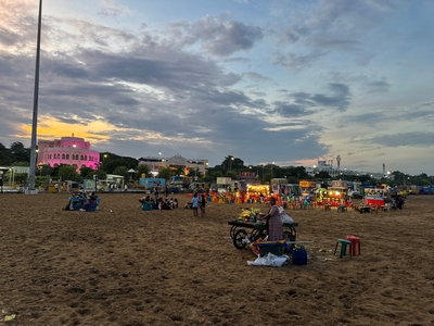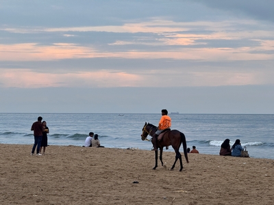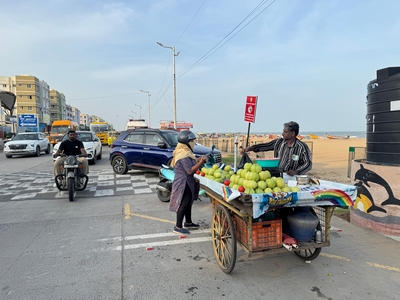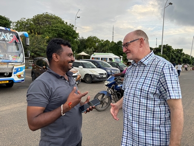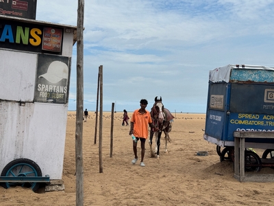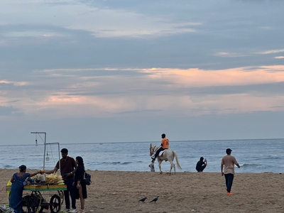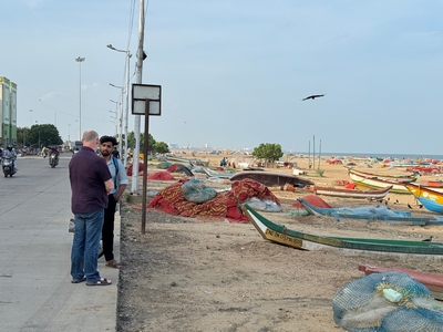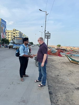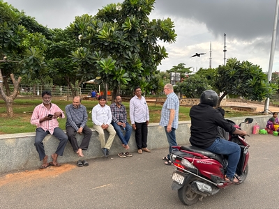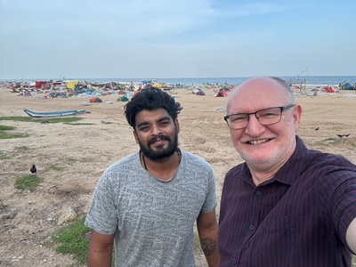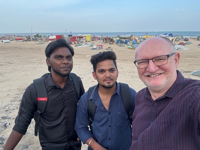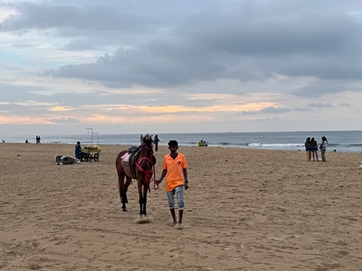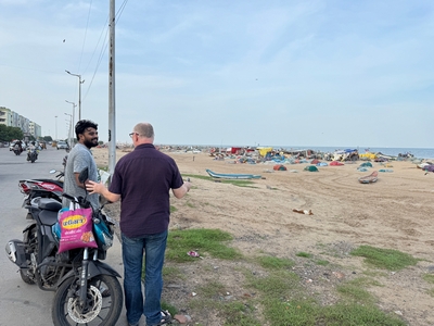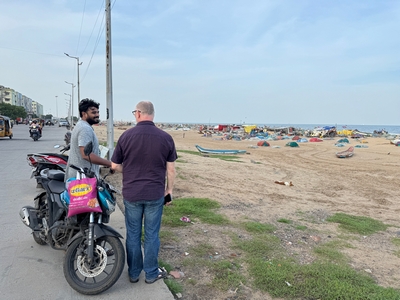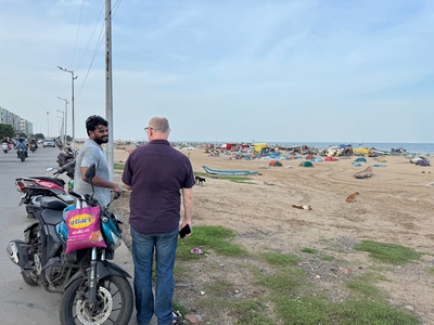 Tak konečně shrnutí našeho prvního týdne... Dnes tedy kolem půlnoci už odjíždíme na letiště a zítra jsme už Sári a já v Praze :-) Rozhodla jsem se příspěvky rozdělit po týdnech především kvůli množství fotek :-) Přikládám jich opravdu hodně pro ty z vás, které zajímá, jak to tady vypadá. Téměř každý den jsme někam vyráželi a poznávali, jak to tady chodí, kde se lidé setkávají a kde je možnost s nimi mluvit (park, pláž apod.). Jedno místo bylo hodně dobré - lidé (většinou na motorce) se tam na širokém okraji silnice podél pláže zastavují, aby si na chvilku odpočinuli, telefonovali, setkali se s někým apod. Tam proběhlo hodně rozhovorů a zatím nejvíce lidí slyšelo evangelium (viz foto). S některými si i manžel vyměnil kontakt. Dál se za ně modlíme. Na jiném místě před pár dny (o tom až v dalším příspěvku) manžel vedl jednoho staršího pána ke Kristu. Sláva Bohu! Lidé jsou tady většinou velmi vstřícní a milí a nejsou tolik odmítaví jako v Bombaji, ale méně lidí zde umí anglicky. Často nemluví ani hindsky, jen tamilsky, což je jejich mateřský jazyk. Vzdělaní lidé však po celé Indii anglicky rozumí dobře.
